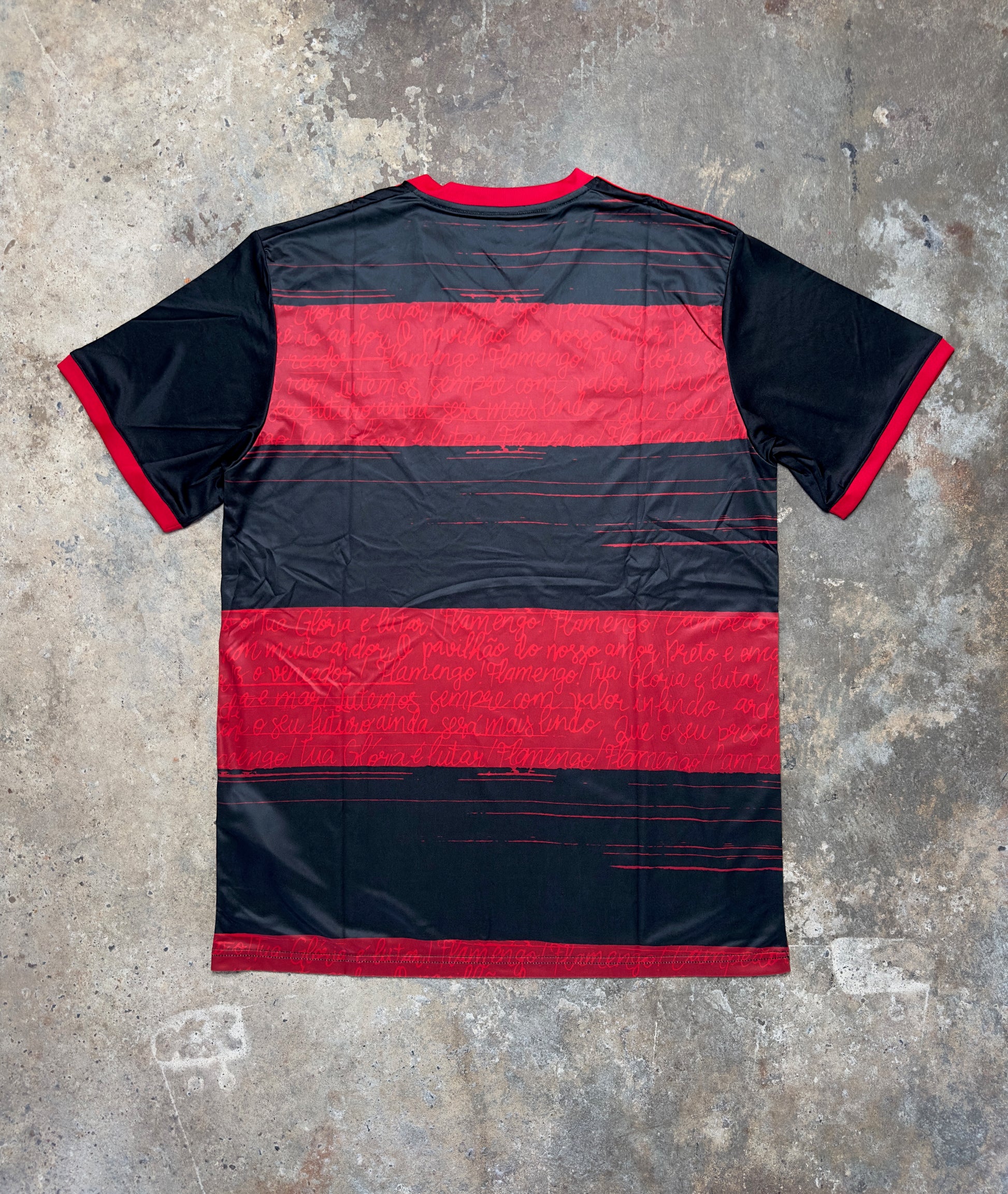 Celebrate the legacy of one of Brazil’s greatest clubs with the Flamengo 2020/21 Home Jersey, designed by Adidas. This classic red-and-black striped shirt honours Flamengo’s historic identity, featuring a handwritten “Glória e Luta” script pattern that represents the club’s spirit of glory and struggle.
